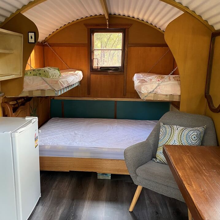 - 2 single bunk beds (150cms long) – there is room on the floor for an additional single blow up mattress or single camping mattress (not supplied)